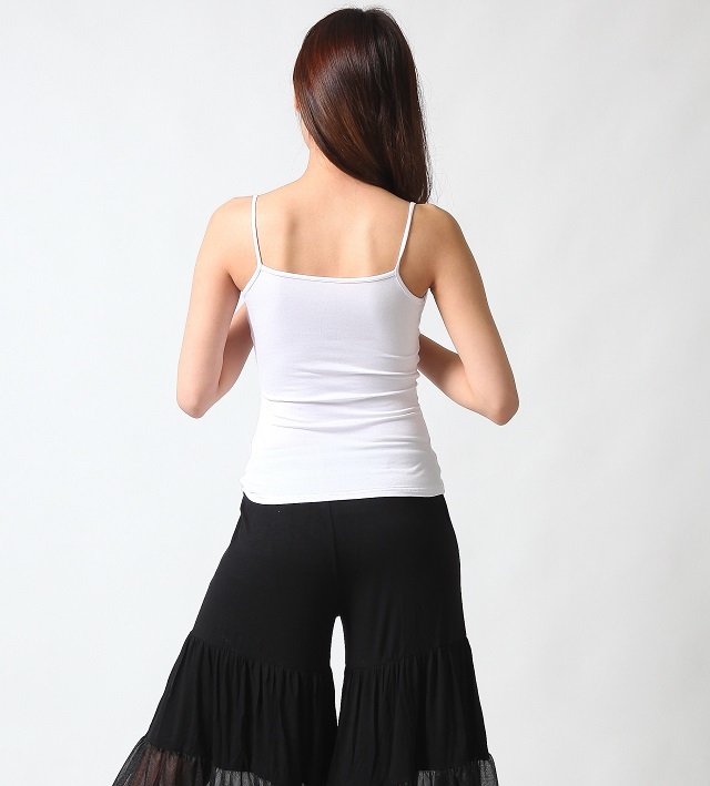 | コメント | 社交ダンス、ヨガフットネス、ベリーダンスのトップスにお勧めのキャミソールです。透けない素材ですので一枚でも着用可能です。(胸パットは入っていません)ボレロや透けるトップスのインナーにも最適です。伸縮性が良く動きやすいです。普段着のトップス、インナーにもお勧めです。*黒(black)は完売いたしました。再入荷の予定はございません。 |