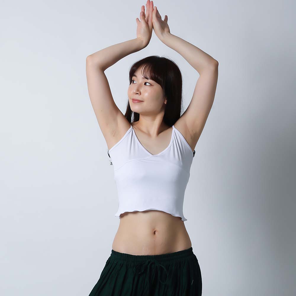 ベリーダンスのトップスにお勧めのキャミソールです。伸縮性が良く動きやすいのでボレロや透けるトップスのインナーに最適です。