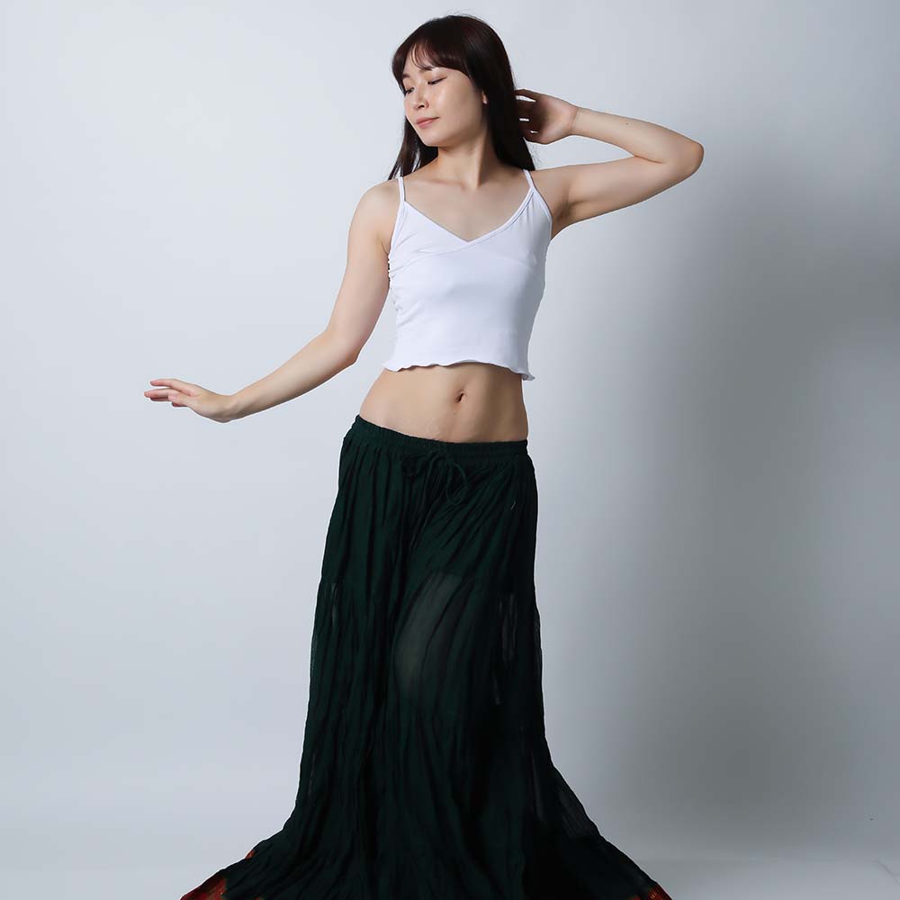 | コメント | ベリーダンスのトップスにお勧めのキャミソールです。伸縮性が良く動きやすいのでボレロや透けるトップスのインナーに最適です。 *スカートは商品に含まれません。トップスのみの販売です。 |