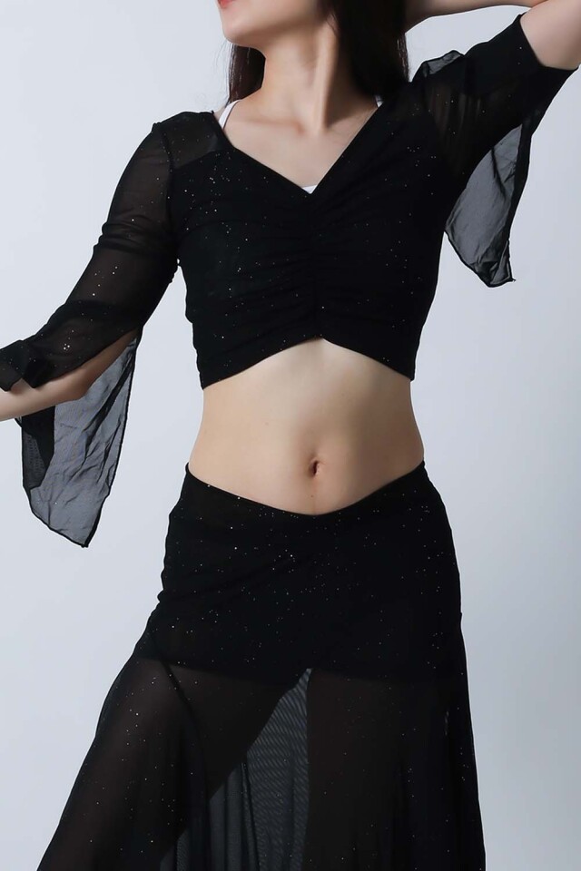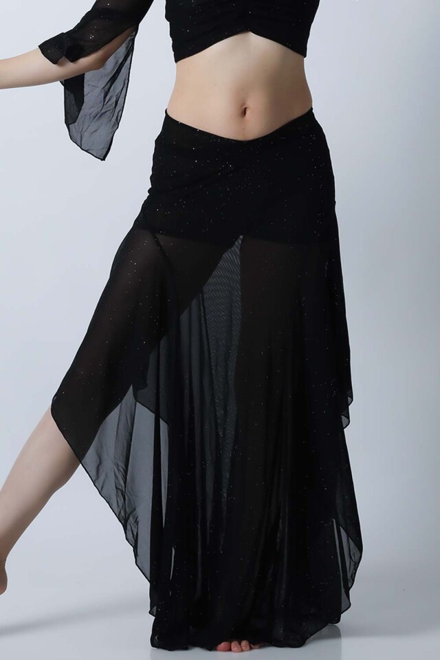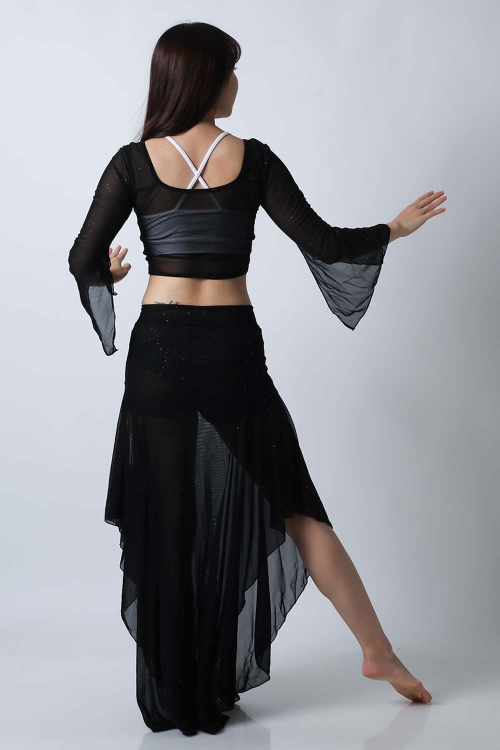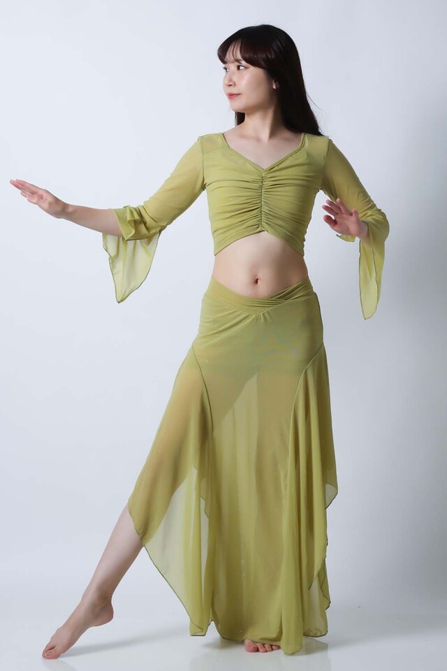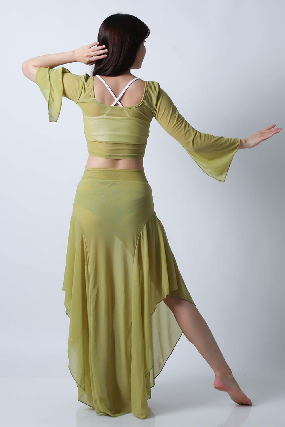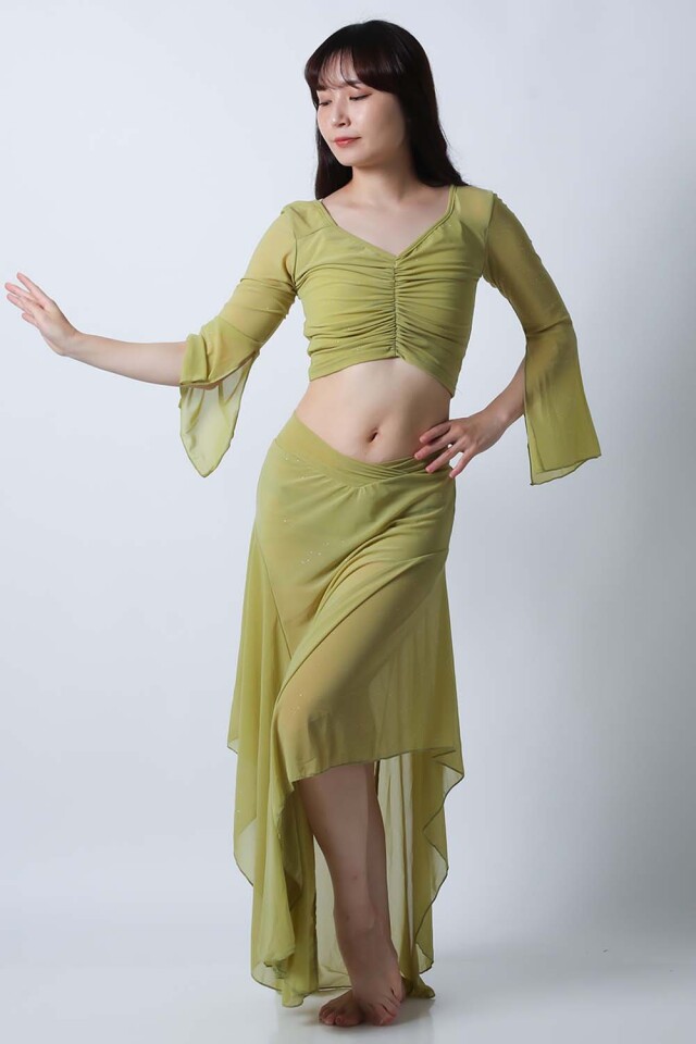 ベリーダンスレッスン用のトップス、スカートの2点セットです。軽くて踊りやすいレッスンウエアです。ラメ入りですので踊るたびにキラキラ輝きます。インナーショーツが縫い付けられていますので安心です。