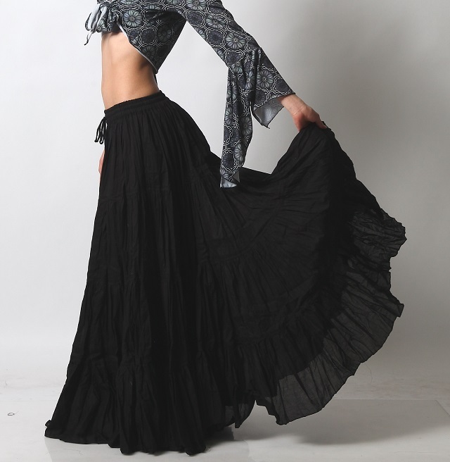 ベリーダンスのトライバル、ジプシーには欠かせない25ヤードスカート(コットン)です。ベーシックな黒なのでトップスやブラベルトとコーディネートしやすいです。