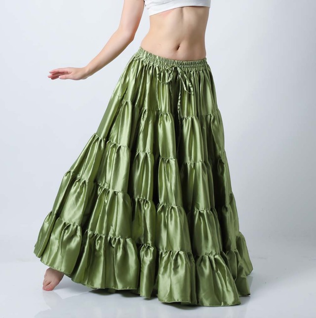 サテン生地なので光沢があり、ギャザー部分もふんわりしていてボリュームがあり、ゴージャスな印象です。こちらは舞台映えする抹茶色です。 スカート単品の販売です。(トップス、ヒップスカーフ等は商品に含まれません) 画像では5段のスカートになっていますが入荷時期や商品により4段になる場合がございます。 *注.こちらの商品は海外での染物であり色移り、色落ちする場合がございます。他の衣類と一緒に洗濯、保管しないようお願いいたします。特に色の薄い色の衣類を着用される場合はご注意ください。 *注.今現在在庫がある商品は画像より濃いめの色味(濃い抹茶色)です。ご理解の上ご購入いただきますようお願いいたします。(商品により色味が異なりますので画像を送って欲しいなどのご要望はご遠慮ください) |