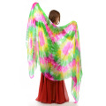ベリーダンスで使用するシルクベールです。シルクを使用した独特の布地の感触がベリーダンスの妖艶な雰囲気にぴったりです。素材はパキスタン製高級シルクを使用し手染めしたベールです。職人による手染めのため一枚一枚、色合いが違い、独特の風情があります。そのため色ムラ、色移り、斑点などが見られる場合がございます。製作過程においてこれらの現象は避けることができませんので不良品扱いはいたしませんので、お許し下さい。シルクベールはシフォン素材に比べ軽く、柔らかいのでふんわりと優雅にベリーダンスが踊れます。シワは霧吹きなどをかけると取れますが、商品が届いたら袋から掛けておくだけでも自然に取れて行きます。こちらのシルクベールはライトグリーン、ピンク、イエローの優しい色合いです。