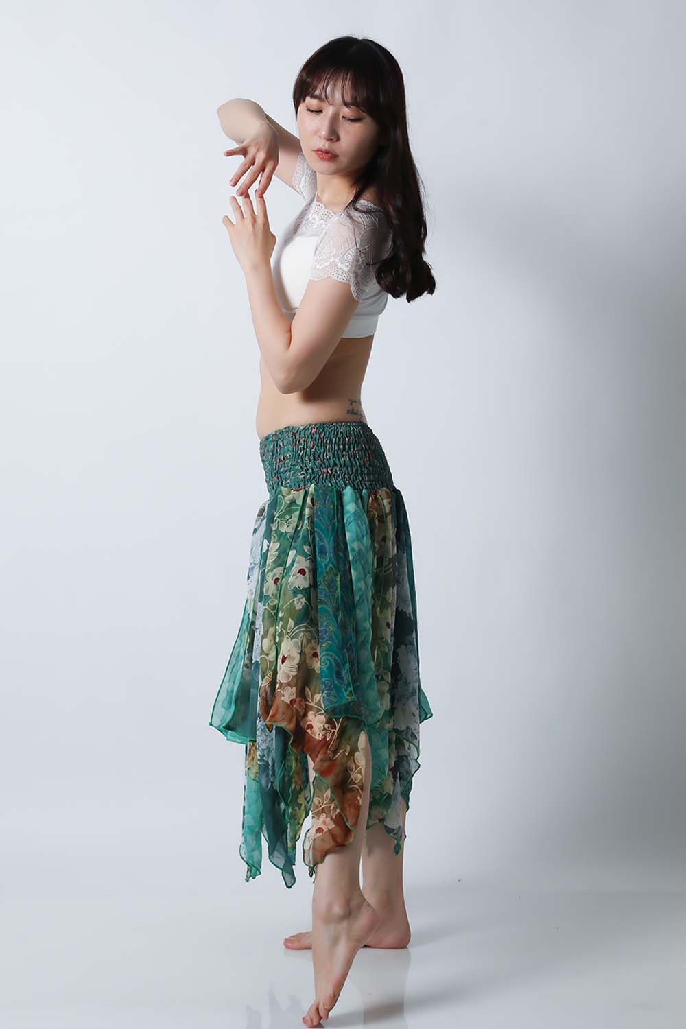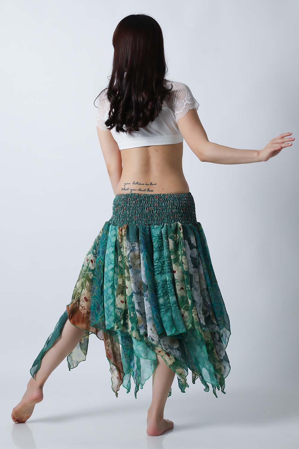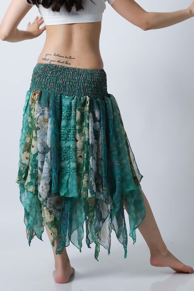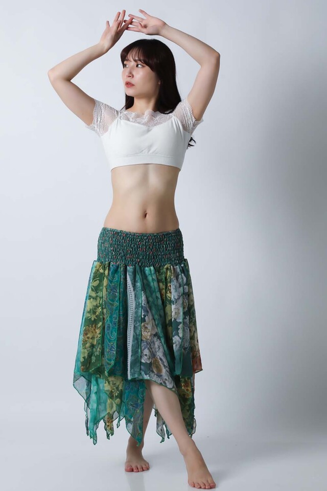 | コメント | ベリーダンスのレッスン、発表会どちらでも使えるトライバルスカートです。レッスン着としても良いし、ジプシースカートや25ヤードスカートの上に重ねて着ても良いです。軽くて踊りやすい素材ですので動きやすくて、持ち運びもラクです。今現在同じ柄の商品は在庫一枚ですので他の人と被る心配もありません。いつものスカートやレギンスにアレンジするだけでOKです。 スカート単品の販売です。(トップス等は商品に含まれません) 今現在、同じ柄のスカートの再入荷予定はございません。 |