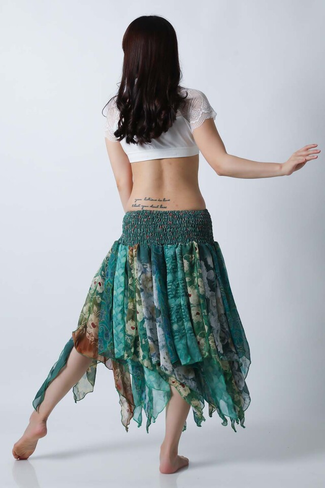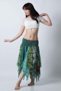 ベリーダンスのレッスン、発表会どちらでも使えるトライバルスカートです。レッスン着としても良いし、ジプシースカートや25ヤードスカートの上に重ねて着ても良いです。軽くて踊りやすい素材ですので動きやすくて、持ち運びもラクです。今現在同じ柄の商品は在庫一枚ですので他の人と被る心配もありません。いつものスカートやレギンスにアレンジするだけでOKです。