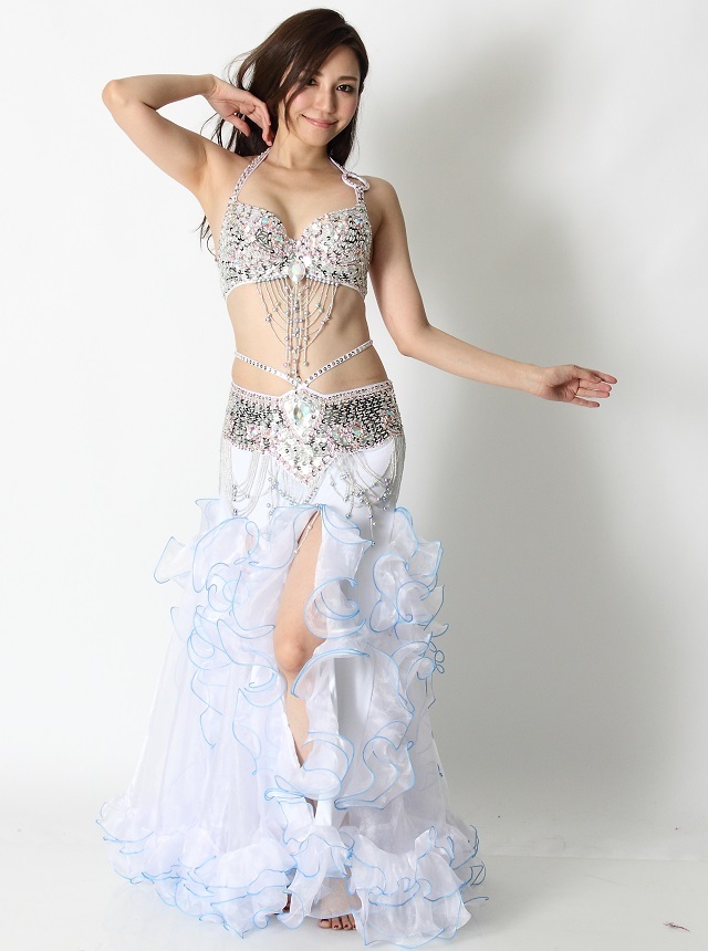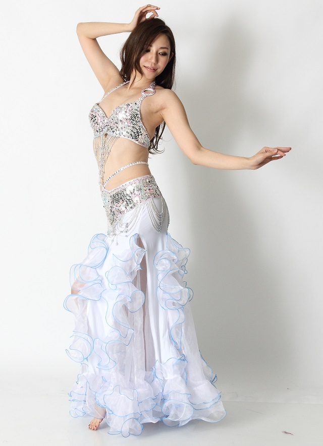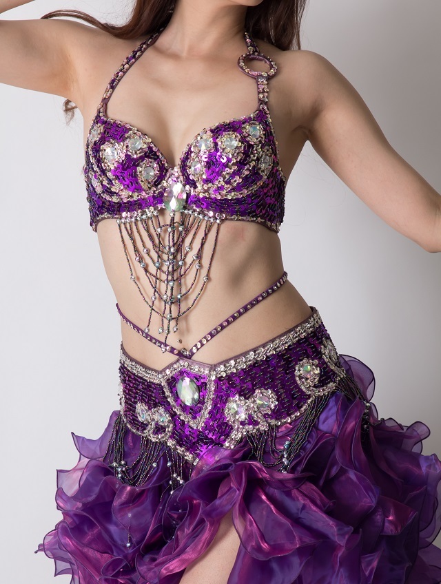 ベリーダンスの発表会やイベント出演にお勧めのベリーダンスコスチューム、ブラ&ベルト2点セットです。踊るたびに揺れるフリンジが華やかに見せてくれます。お好みのスカートと組み合わせてご着用ください。