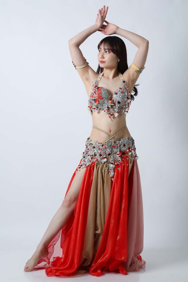 | コメント | エジプト製デザイナー【Amr】のベリーダンスコスチュームです。ブラウン、レッド、ピンクの生地を組み合わせた衣装です。ルビー色のビジューが魅力的です。軽くて踊りやすい衣装です。インナーショーツが縫い付けられていますので安心して踊れます。ブラ、スカート、アームバンド(2枚)のセットです。 こちらの商品は、在庫一点のみとなっております。再入荷の予定も基本的にはございません。 |